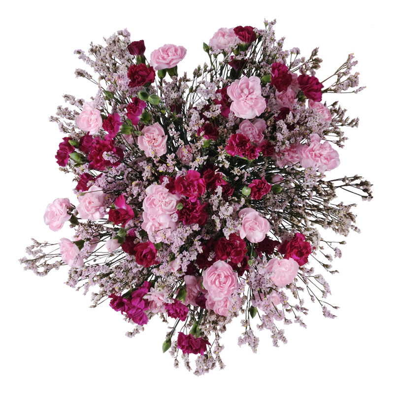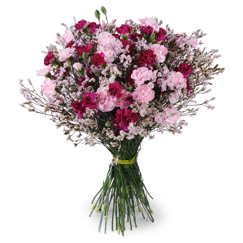 Bukiet „Z nutą goździka” to kwiatowa propozycja, która łączy klasykę goździków gałązkowych z aktualnymi, naturalnymi dodatkami.